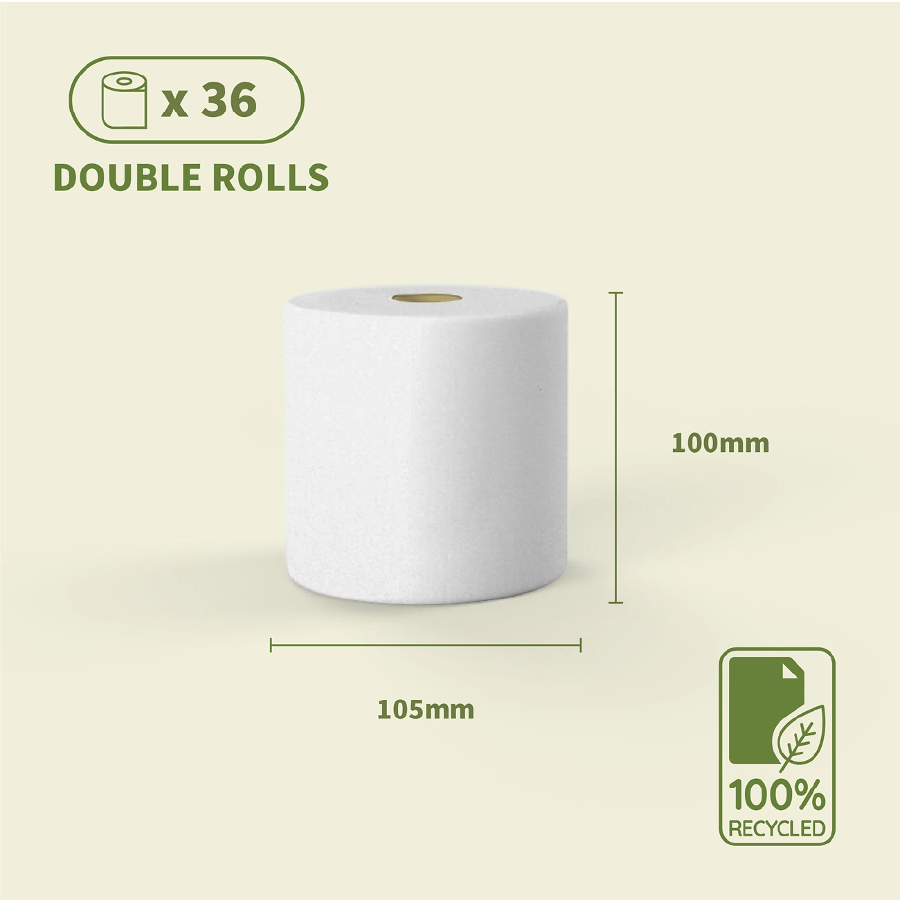 Our bulk toilet paper rolls are designed for comfort, reliability, and sustainability in every washroom. Each LEAF Kind Premium roll features triple-ply quilting for superior absorbency and strength while remaining gentle on the skin. Made from 100% recycled paper and packed in biodegradable, plastic-free wrapping, these rolls help protect forests and reduce waste without sacrificing performance.
