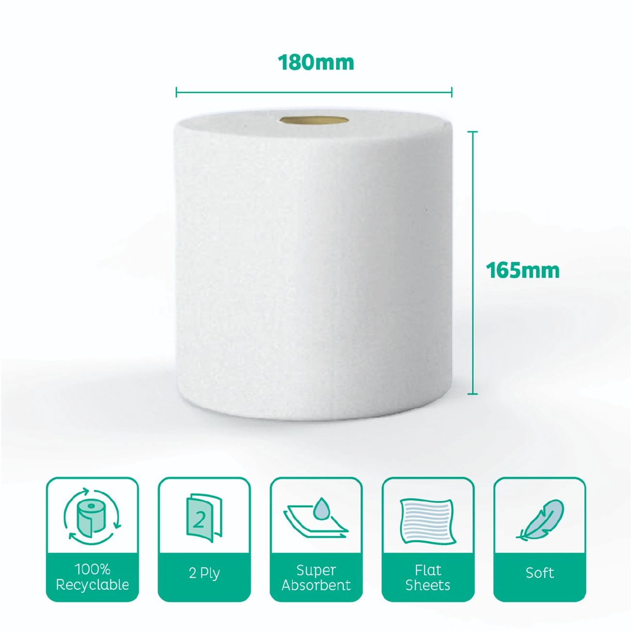• 2 Ply Centrefeed: double layered paper for extra absorption & durability