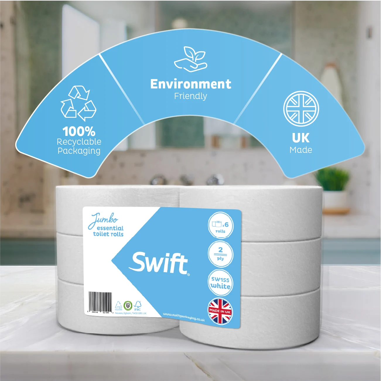 No-fuss utility, comfort in every sheet – Swift’s essential jumbo rolls are highly absorbent and strike the perfect balance between durability and softness. Designed with value and practicality in mind, they’re an ideal solution for offices, schools, shared facilities, and other high-traffic commercial environments.
