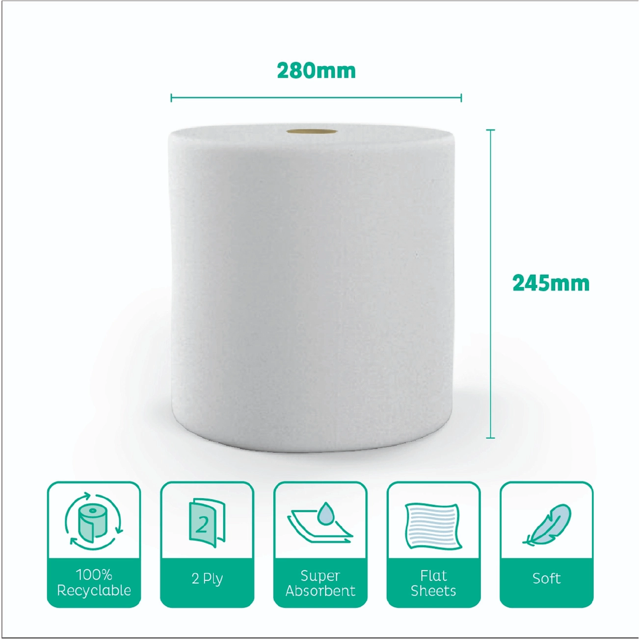 Each roll made from 100% recycled material and comes in 100% recyclable packaging—delivering a reliable, eco-conscious solution for high-usage environments.