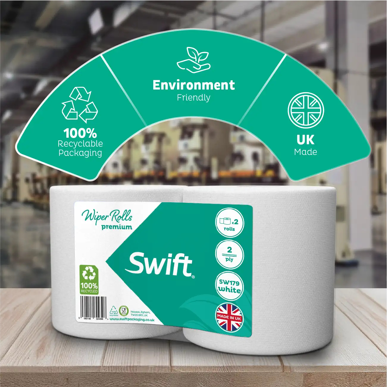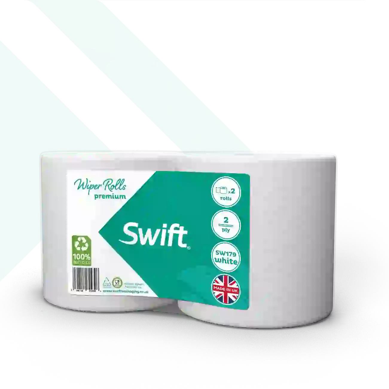 Swift’s Premium White Wiper Rolls are built to handle everyday cleaning demands in busy manufacturing and industrial settings. The strong, absorbent 2-ply sheets quickly tackle spills, oils, and general messes, while maintaining durability even when wet.