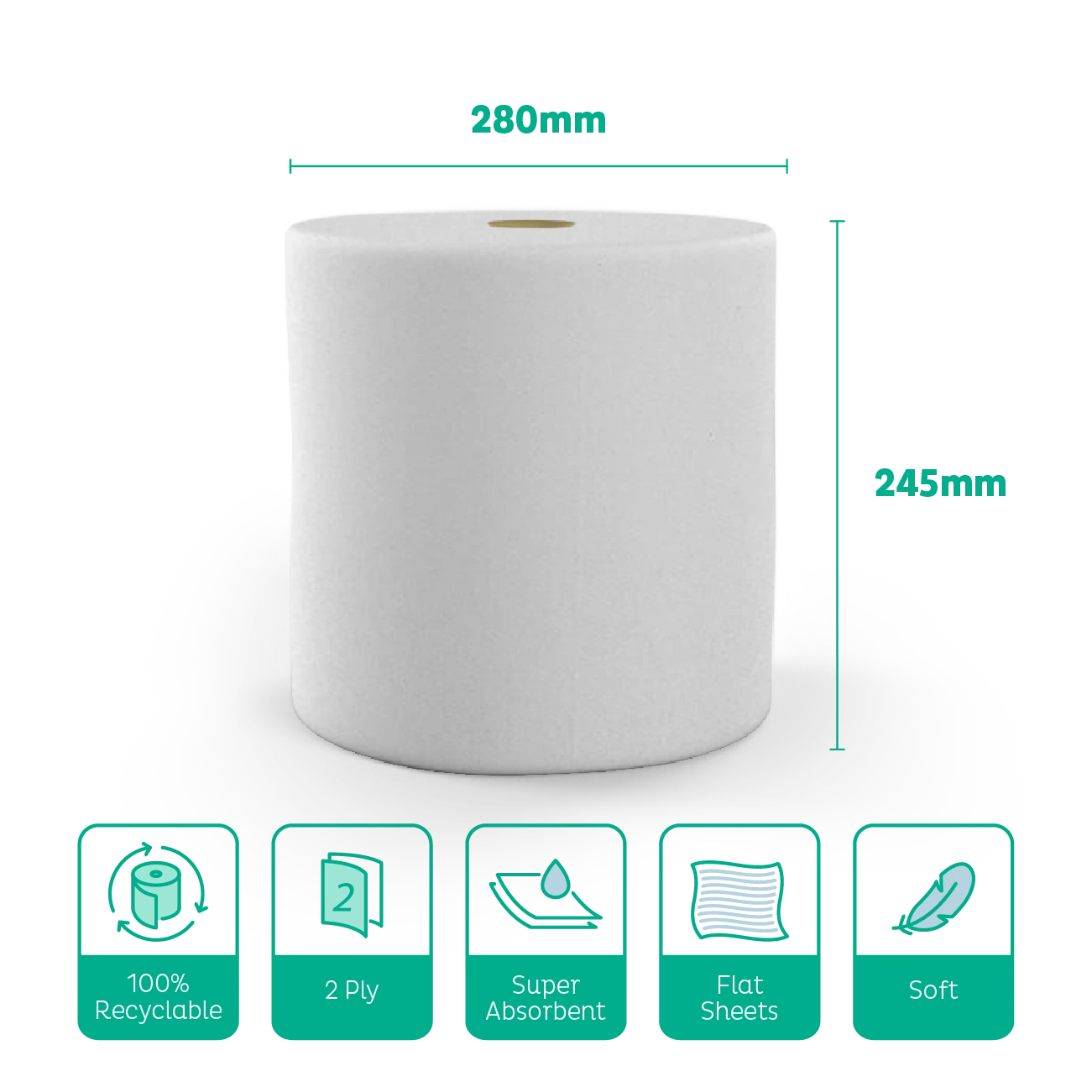Ideal for wiping surfaces, tools, or hands, these high-capacity rolls offer consistent performance and easy dispensing for efficient, on-the-go use. Their clean white finish adds a professional touch and helps maintain workplace hygiene standards.